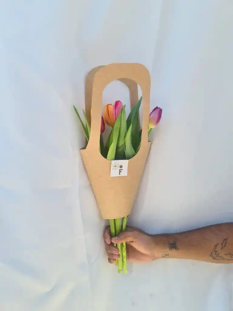 Ramo de 5 lindos tulipanes mixtos cultivados en el sur de Chile. Importante: tomar en cuenta que los tulipanes son una flor de duración corta 5 días aproximados.
