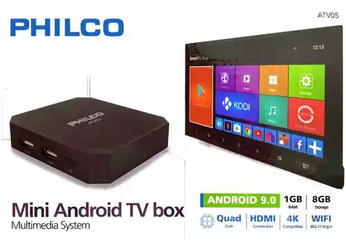 Sistema Operativo Android 9.0 Procesador ARM Cortex A53 Quad Core CPU 2.0GHz Procesador GPU Penta Core / Mali 450 Compatible con formatos HD: VC-1, H.264, H.265. 1 GB de RAM. 8 GB de Almacenamiento Interno. Lector Micro SD. Dos Puertos USB 2.0 Puerto Ethernet/LAN Control remoto