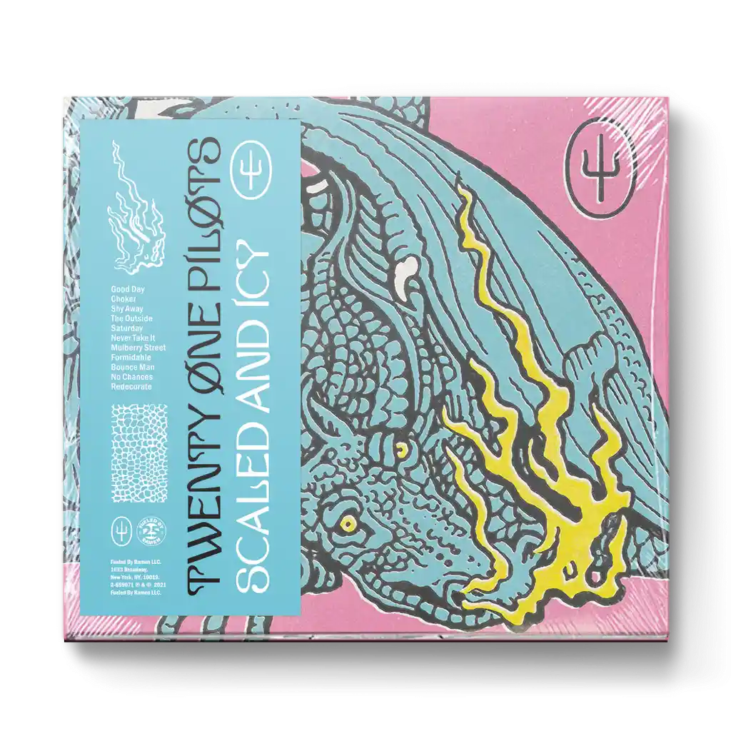 Scaled And Icy es el sexto álbum de estudio de Twenty One Pilots, lanzado el 21 de mayo de 2021. Este álbum marca un regreso con una mezcla de sonidos optimistas y letras introspectivas, reflejando las experiencias de la banda durante la pandemia. Fue grabado principalmente en casa, destacando la habilidad de Tyler Joseph y Josh Dun para crear música de calidad a distancia. Características Destacadas: • Formato: CD • Lanzamiento: 21 de mayo de 2021 • Productores: Tyler Joseph, Greg Kurstin, Mike Elizondo • Contenido Adicional: Incluye un libreto con letras de las canciones y arte exclusivo. Lista de Canciones: 1. Good Day 2. Choker 3. Shy Away 4. The Outside 5. Saturday 6. Never Take It 7. Mulberry Street 8. Formidable 9. Bounce Man 10. No Chances 11. Redecorate Este álbum destaca por su enfoque positivo y su sonido fresco, haciendo de Scaled And Icy una adición esencial para los fanáticos de la banda.