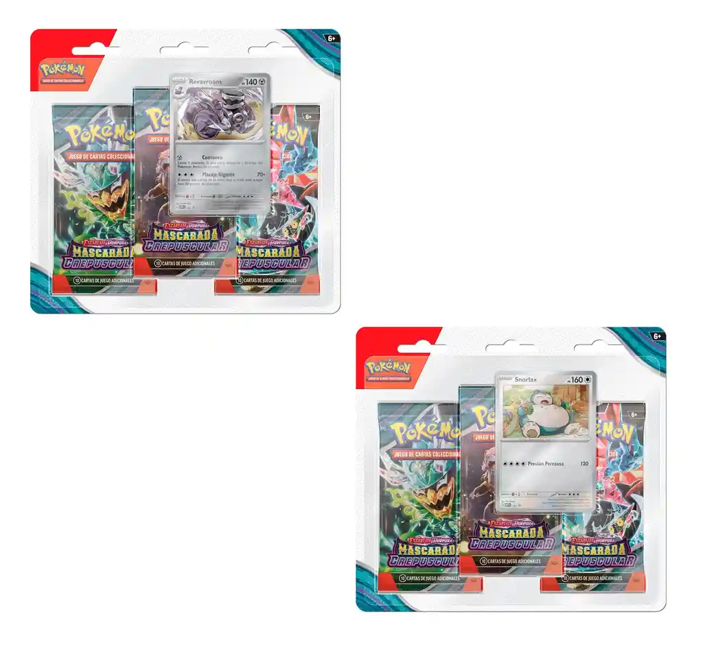 Blister contiene 3 sobres de expansión Mascarada Crepuscular y 1 carta holográfica promocional