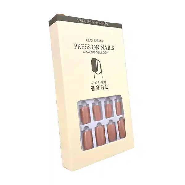 El kit contiene: 30 uñas en diferentes tamaños + 1 Lamina de adhesivo, 1 Palito de Naranja, 1 Mopa Limpiadora Cómo aplicar: 1 - Limpiar uñas 2 - Seleccionar el tamaño correcto de uña 3 - Poner el pegamento líquido o el pegamento en stickers sobre sus uña reales 4 - Presionar las uña falsas sobre uñas naturales Como quitar: 1 - Remojar uñas en agua tibia por 10-15 minutos 2 - Suavemente quitar la uña Precaución: No usar el producto en uñas infectadas, dañadas, delgadas o delicadas Mantener fuera del alcance de los niños.