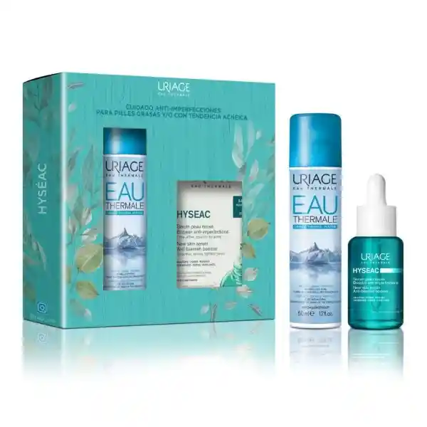Set Contiene 2 Unidades. Sérum Descubre 30 mL + Agua Termal 50 mL. Set Hyséac: Sérum Booster Anti-Imperfecciones Para Pieles Adultas Con Tendencia Acneica. Disminuye Imperfecciones Por Estrés y Agua Termal de Uriage Hidrata Calma y Protege tu Piel en un Formato Para Llevar a Todas Partes.