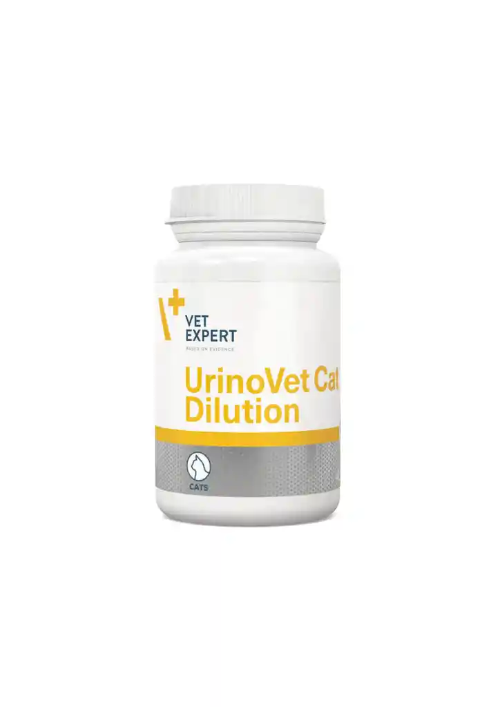 UrinoVet Cat Dilution son cápsulas para el apoyo en cálculos renales de estruvita, los elimina y acelera la regeneración de la vejiga en gatos. Características: El mejor apoyo en cálculos renales de estruvita. Apoya el funcionamiento adecuado del tracto urinario. Además contiene sustancias que acidifican la orina. Totalmente recomendado en inflamaciones e infecciones del tracto urinario. También con trastornos relacionados con el estrés, como la cistitis idiopática. Inhibe la adhesión de bacterias a la vejiga y aumenta el volúmen de la orina. Así pues está totalmente recomendado para el tratamiento de cristaluria y cálculos en la vejiga (independiente del tipo). así como después de un cateterismo y eliminación de cálculos en la vejiga Acelera la regeneración Actúa como diurético y reduce el estrés. Composición: Extracto de arándano 31,25 mg Extracto de valeriana 10 mg y Extracto de perejil 12,5 mg Sulfato de glucosamina 21,025 mg DLmetionina 250 mg Vitamina C 75 mg Vitamina B6 3 mg Modo de uso: 2 cápsulas por gato al día (1 por la mañana y 1 por la noche). CONTIENE: 45 Capsulas.