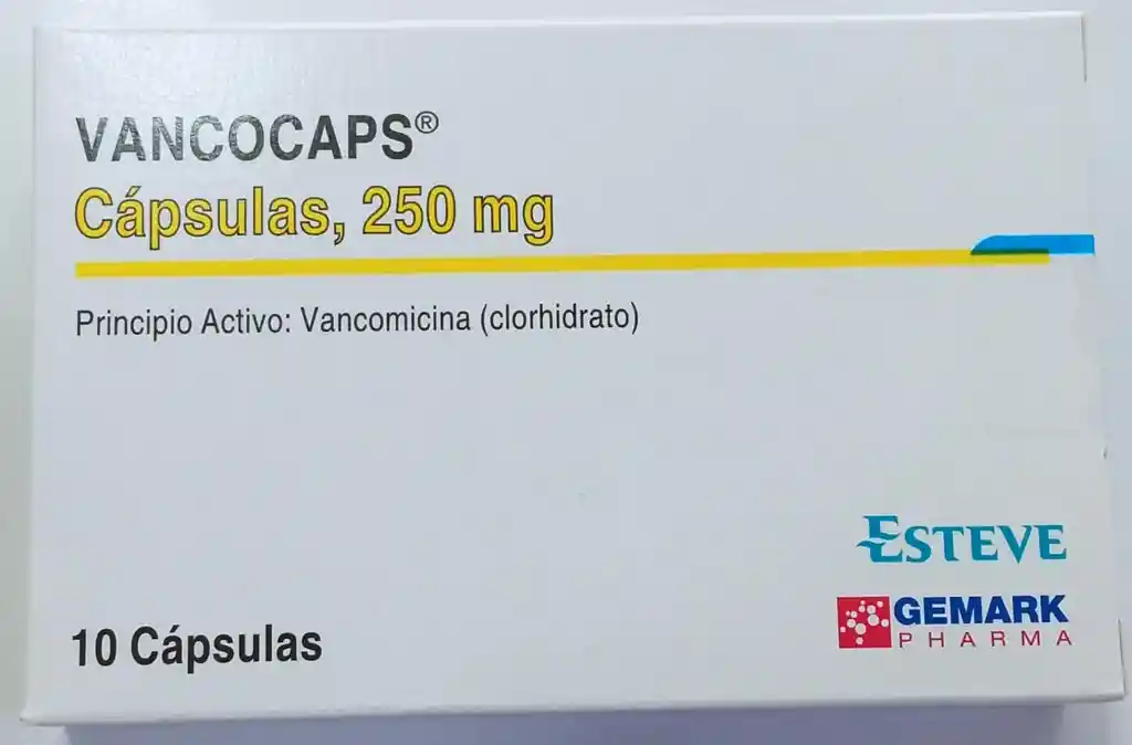 Vancomicina Clorhidrato 250 mg x 10 Capsulas VANCOCAPS 250 mg es un antibiótico glicopéptido. • VANCOCAPS 250 mg se utiliza en el tratamiento de ciertos tipos de inflamación intestinal. - Enterocolitis pseudomembranosa asociada a antibióticos (Inflamación intestinal severa causada por una variedad de Clostridium difficile productora de toxinas) - Enterocolitis Estafilocócica (Enfermedad Inflamatoria intestinal causada por Staphylococcus sp.) Cuando este medicamento se toma para otro tipo de infecciones, éste no es efectivo, ya que no pasa significativamente desde el tracto digestivo hacia el torrente sanguíneo.