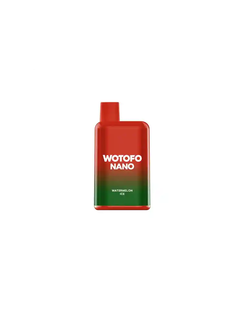 Wotofo Nano 1000 Puffs – Watermelon Ice combina la dulzura natural y jugosa de la sandía con un toque helado que aporta una sensación refrescante en cada calada. Este perfil de sabor equilibrado es perfecto para quienes disfrutan de sabores frutales con un toque revitalizante, ideal para cualquier momento del día o como un complemento refrescante después de una comida. Capacidad de 3 ml, equivalente a 1000 puffs. Potencia: 3,5% Batería de 500 mAh. No recargable. Resistencia: 1.1 ohm Mesh Coil. Instrucciones del Wotofo Nano 1000 Puffs – Watermelon Ice Usar el vape una vez retirado del empaque hasta agotar carga existente. Recuerda: Este vape no es recargable, una vez finalizada su vida útil deberás desecharlo.