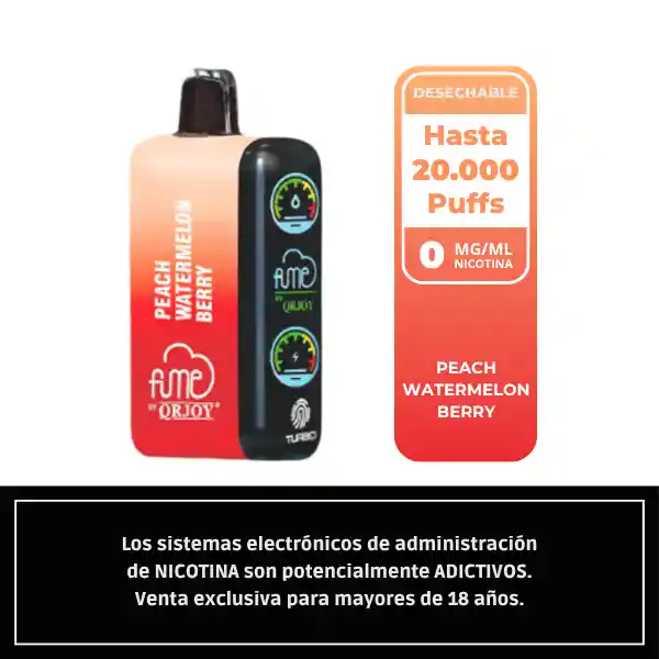 Vape Fume Prime Zero Peach Watermelon Berry 20.000 Puffs – colaboración con la bebida PRIME de Logan Paul y KSI.Con pantalla LED, indicador de líquido y batería, modo Turbo, 0% nicotina y 700 mAh recargable USB-C.