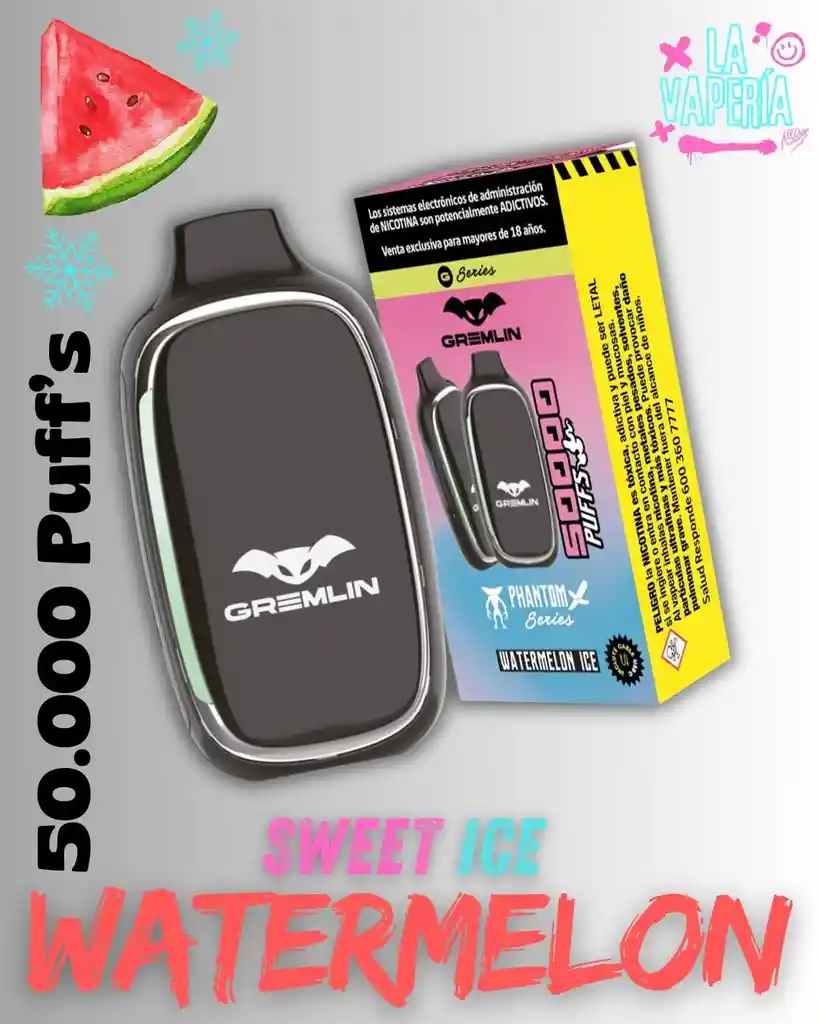 Vaper 50.000 Puffs · Watermelon Ice · Vaporizador Desechable