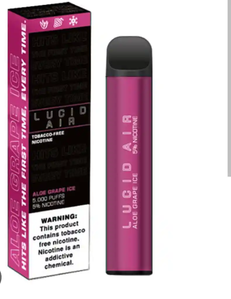 vaporizador desechable lucid air 5000 caladas sabor aloe grape ice 5% nic carga c