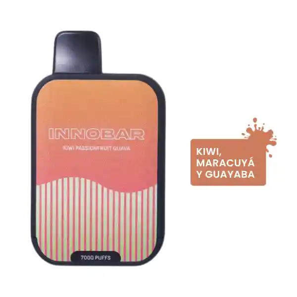 Innobar 7000 Puffs – Kiwi Passionfruit Guava fusiona la acidez del kiwi, la intensidad del maracuyá y la dulzura de la guayaba. Brinda una experiencia exótica y equilibrada en cada calada, con 7000 puffs de sabor vibrante.