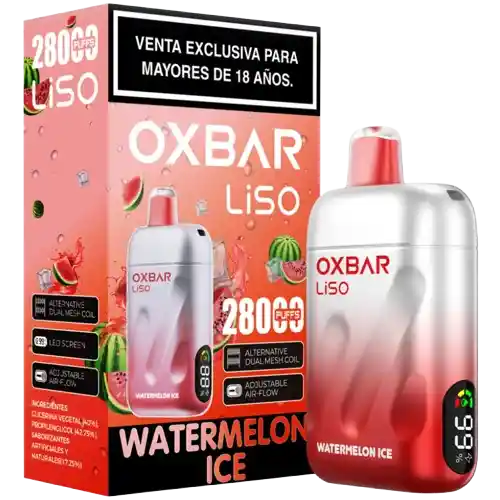 Vaporizador Oxbar Liso 28000 Puffs Watermelon Ice, ofrece una experiencia de vapeo excepcional, con un sabor que combina el dulzor jugoso de la sandía con un toque helado refrescante. Este perfil de sabor garantiza una calada suave y agradable, perfecta para disfrutar durante cualquier momento del día. Este dispositivo cuenta con una capacidad de e-líquido de 20 ml, proporcionando hasta 28000 puffs, lo que asegura un uso prolongado. Está equipado con una batería de 650 mAh y ofrece una recarga fácil a través de USB-C, lo que facilita mantener el dispositivo operativo sin complicaciones.