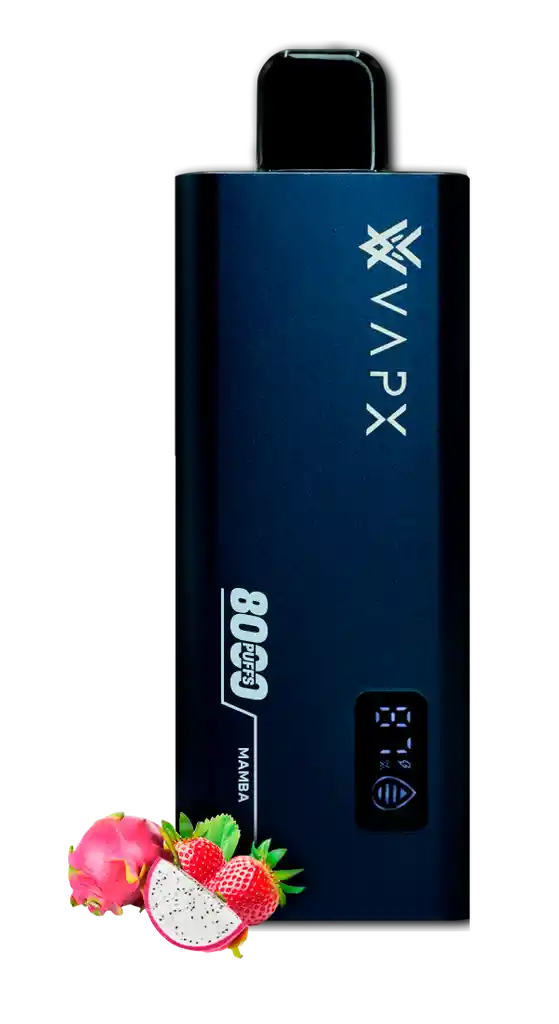 El VAPX 8000 PUFF Mamba ofrece una combinación sofisticada de frutas tropicales y bayas, con un sabor pleno y equilibrado, sin notas excesivamente dulces. Cuenta con pantalla con indicador de líquido y batería, regulador de entrada de aire, es recargable con cargador Tipo C e incluye un lanyard de regalo.