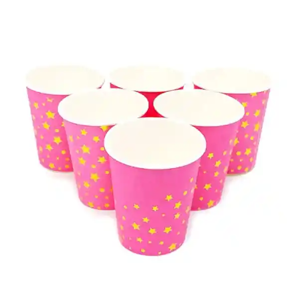 Vaso Fucsia Estrellas y Lunares Dorados