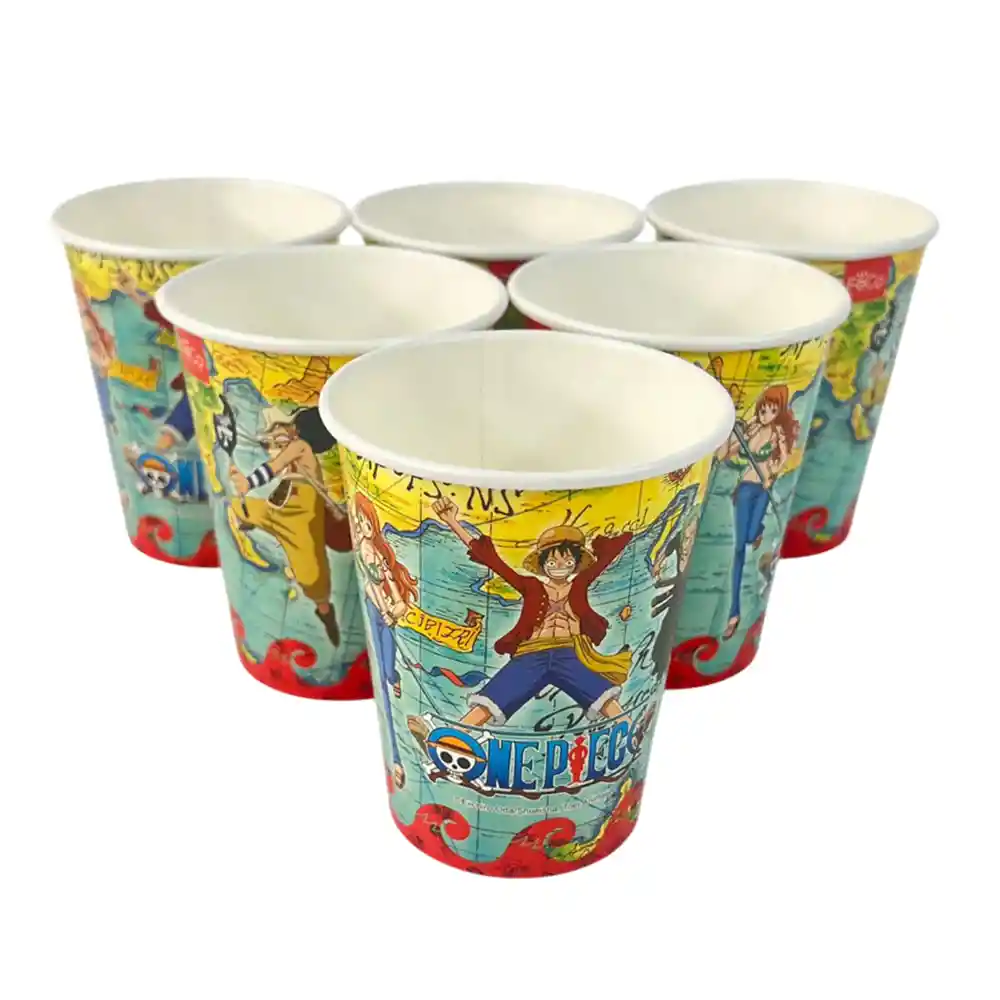 Material: Polipapel Capacidad: 200 cc Incluye: 6 vasos con diseño de One Piece