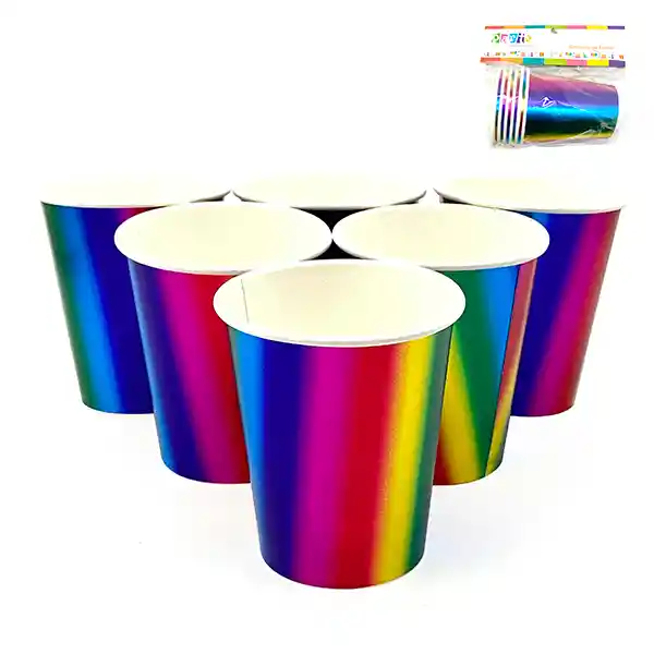 VASO POLIPAPEL ARCOIRIS METAL GRANDE 6 UNIDADES