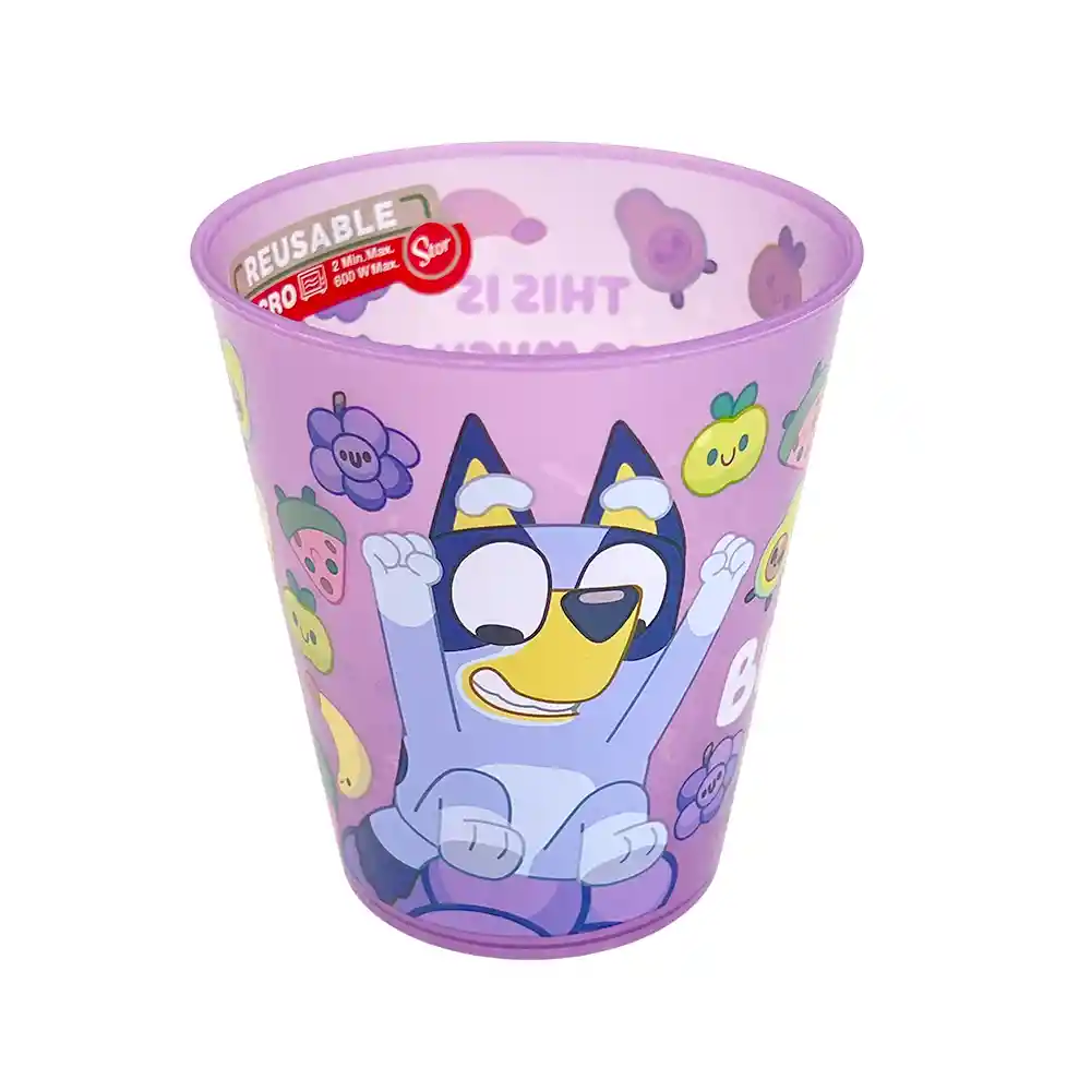 Agrega diversión y color a las bebidas de los más pequeños con este set de 4 vasos reutilizables con diseño de Bluey. Perfectos para cumpleaños, celebraciones infantiles o el dÃa a dÃa en casa. Fabricados en PP (polipropileno) de alta calidad, son resistentes, seguros y fáciles de limpiar. Además, pueden ser un excelente souvenir para los invitados de la fiesta. Beneficios Diseño de Bluey que fascina a niños y niñas Apto para microondas (máx. 2 minutos a 600 W) Reutilizable y resistente, ideal para uso diario Tamaño perfecto para jugos, agua o batidos Ideal como souvenir en celebraciones infantiles Detalles técnicos Formato: Set de 4 vasos Material: PP (polipropileno) reutilizable Medidas: 9 cm de alto x 8 cm de diámetro superior Uso en microondas: Máximo 2 minutos a 600 W Apto para lavavajillas: No Diseño: Bluey ¡Prácticos, duraderos y llenos de alegrÃa para cada sorbo! PÃdelo ahora y recÃbelo en la puerta de tu casa
