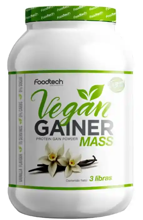 Vegan Gainer Mass es un ganador de peso vegano de la marca Foodtech, diseñado para deportistas que desean llegar a sus necesidades calóricas diarias y aumentar el peso corporal de forma saludable con nutrientes de origen 100% vegetal. El ganador de peso Vegan Gainer Mass es una excelente fuente de calorías de rápida absorción, diseñado con proteína aislada de soya y maltodextrina
