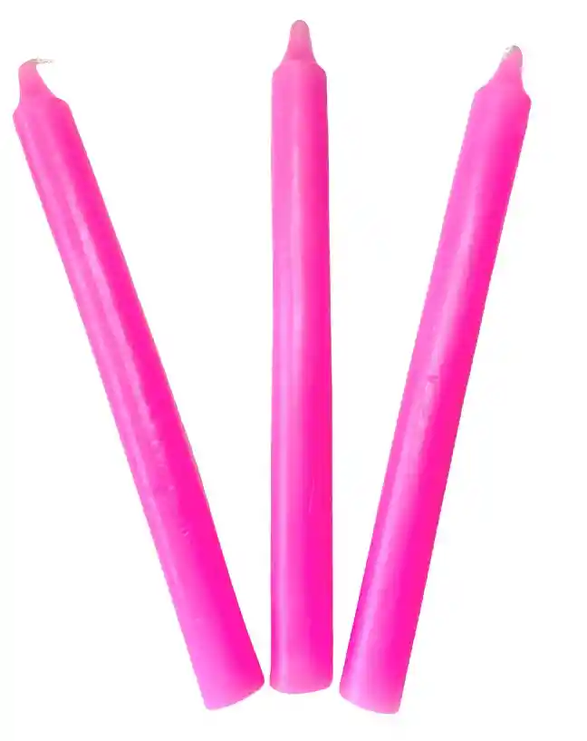 Pack de 3 velas rosadas para cromoterapia. El rosado es el color del amor romántico y del compromiso. Utiliza velas rosas para potenciar tu relación de pareja, o quién sabe…encontrar el amor. Una combinación infalible en el amor es la de rojo, rosa y blanco. Es el color de la energía femenina y del corazón. Usa velas rosas si quieres que tu velada sea sensual y llena de dulzura.