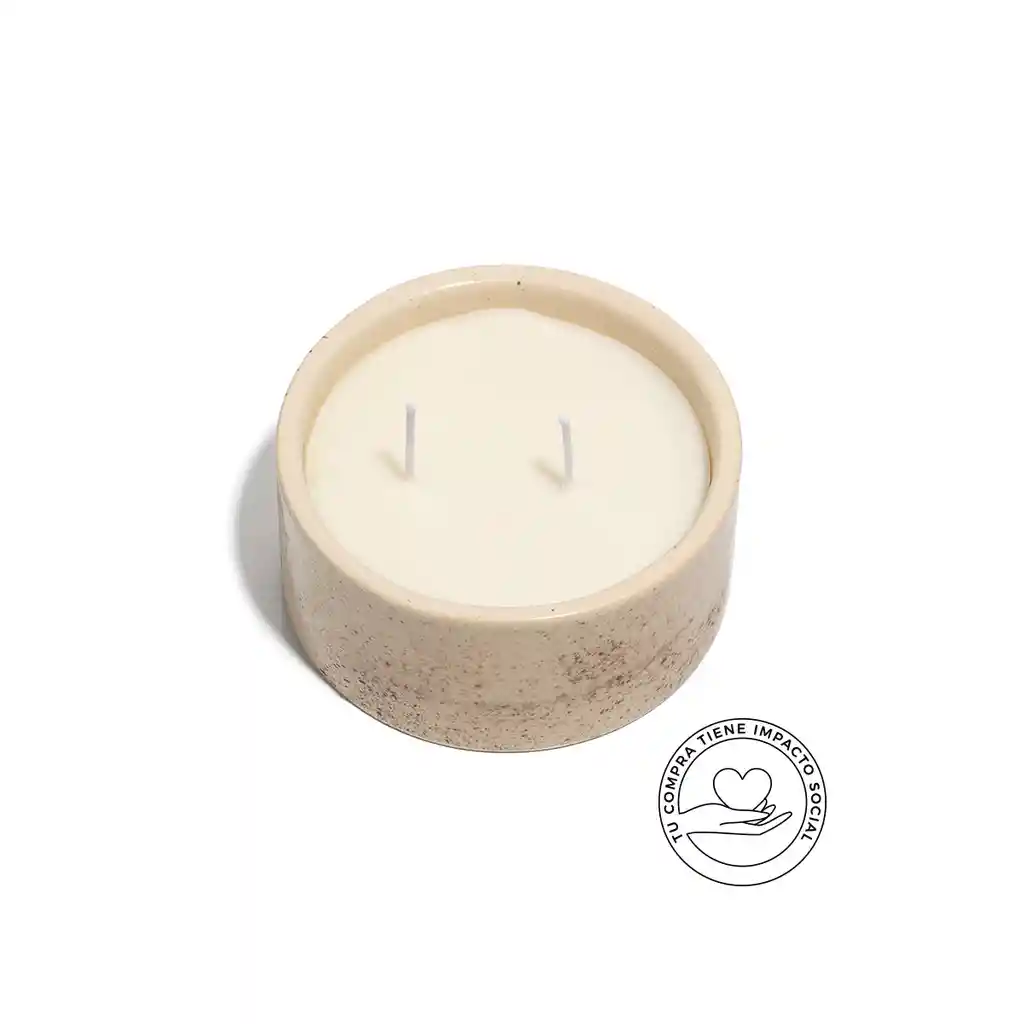 HANDMADE COLLECTION - Edición limitada. Producida artesanalmente por Fundación Los Naranjos. Vela aromática vegetal en exclusiva cerámica de 12 cm de diámetro y 6 cm de alto.