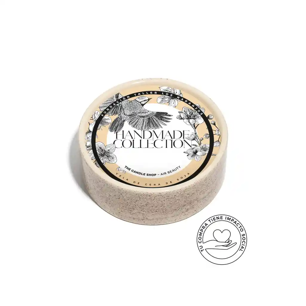 HANDMADE COLLECTION - Edición limitada. Producida artesanalmente por Fundación Los Naranjos. Vela aromática vegetal en exclusiva cerámica de 16 cm de diámetro y 6 cm de alto.