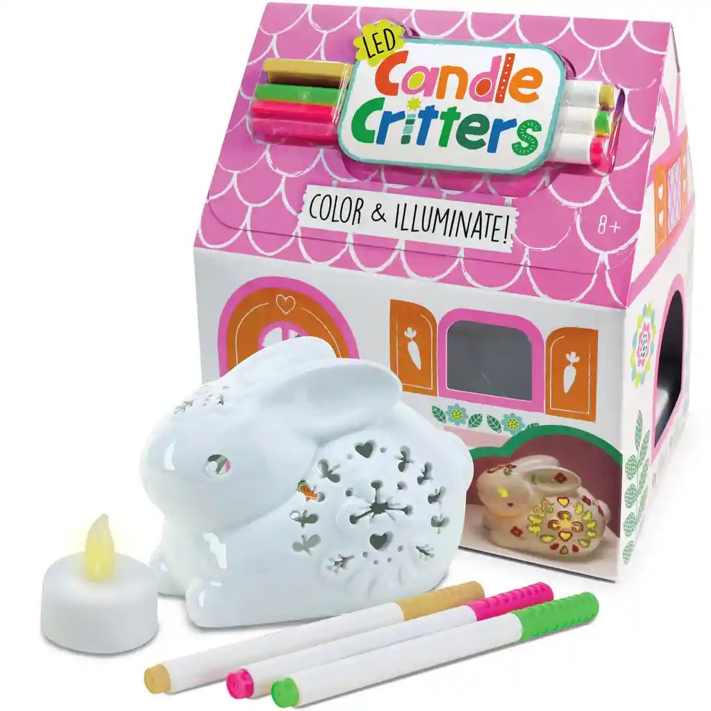 ¡Este adorable conejito de cerámica de alta calidad está listo para ser decorado y personalizado! Simplemente colorea sobre y alrededor de los hermosos detalles en relieve y los recortes de estrellas con los 3 marcadores de cerámica, luego coloca la vela LED en la parte posterior y observa el brillo. No te equivoques: si necesita borrar, simplemente limpia con un paño húmedo y vuelve a intentarlo. Las tintas cerámicas fijan permanentemente en 24 horas. El kit de manualidades completo incluye el conejito de cerámica, 3 marcadores de cerámica, una vela LED con batería e instrucciones.