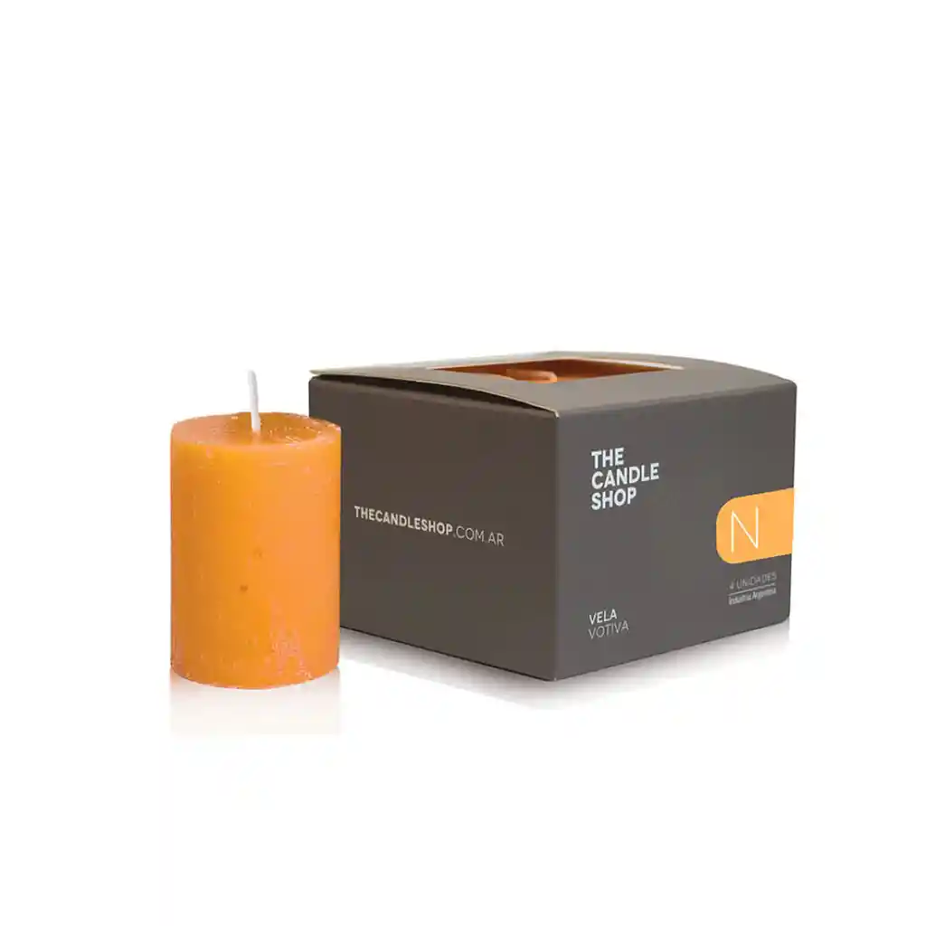 Vela votiva de 4 cm de diametro y 5 cm de alto en caja de 4 unidades