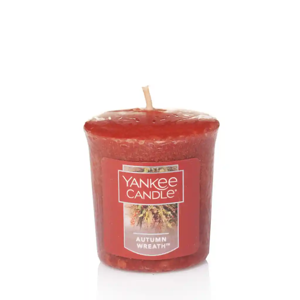Vela aromática Votiva Guirnalda de otoño AUTUMN WREATH: Es una alegre bienvenida a las condimentadas y tibias hojas de otoño y manzanas acaneladas. Ingredientes: Hojas y manzanas con canela Impresiones: Hojas verdes y manzana. - Canela, clavos de olor y nuez moscada. - Notas de madera y vainilla. Perfecta para probar nuevas escencias o aromas en cualquier ocasión, nuestras velitas Votives ofrecen muchas posibilidades decorativas cuando se utiliza con uno de nuestros envases porta Votive. Se venden por separado, cada uno viene envuelto y etiquetado. Hasta 15 horas de fragancia. Peso: 50g