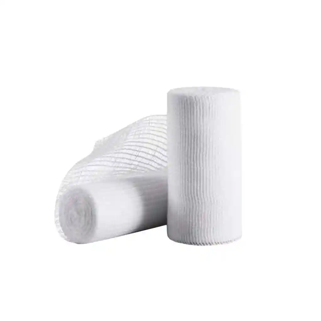 Rollo de venda de gasa elasticada, fabricado en base a algodón y tejidos elásticos. Empleada en la fijación de gasas y apósitos, asi como en la sujeción de sondas o tubos esofágicos. 12 CMS DE ANCHO X 4 METROS LARGO