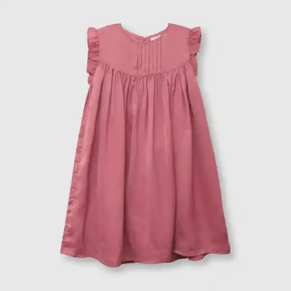 Gasa Satinada Con Pliegues en el Canesu y Mini Vuelo en Las Mangas. Botones en la Espalda. Con Forro al Tono. Largo a la Rodilla.