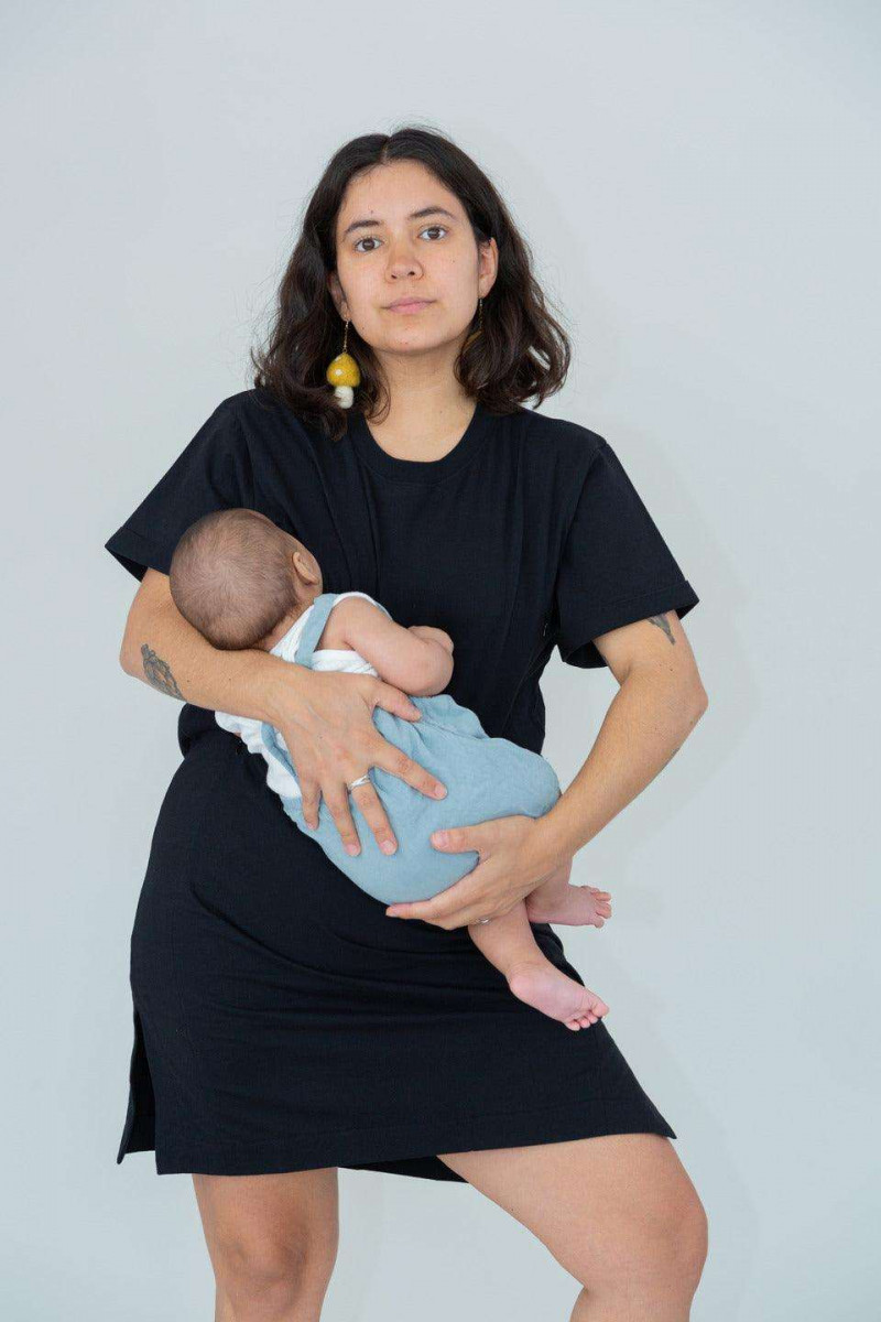 Nuestro vestido de lactancia Azucena, de algodón Pima Peruano con cierres invisibles: la solución perfecta si buscas comodidad y estilo.