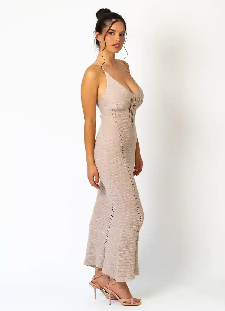 Silver Tide Maxi Dress | Vestido Maxi Gris Claro con Amarres en la Espalda El Silver Tide Dress es un vestido largo color arena con detalles tejidos y amarres en la espalda. Su diseño fluido y sofisticado lo hace perfecto para cualquier ocasión