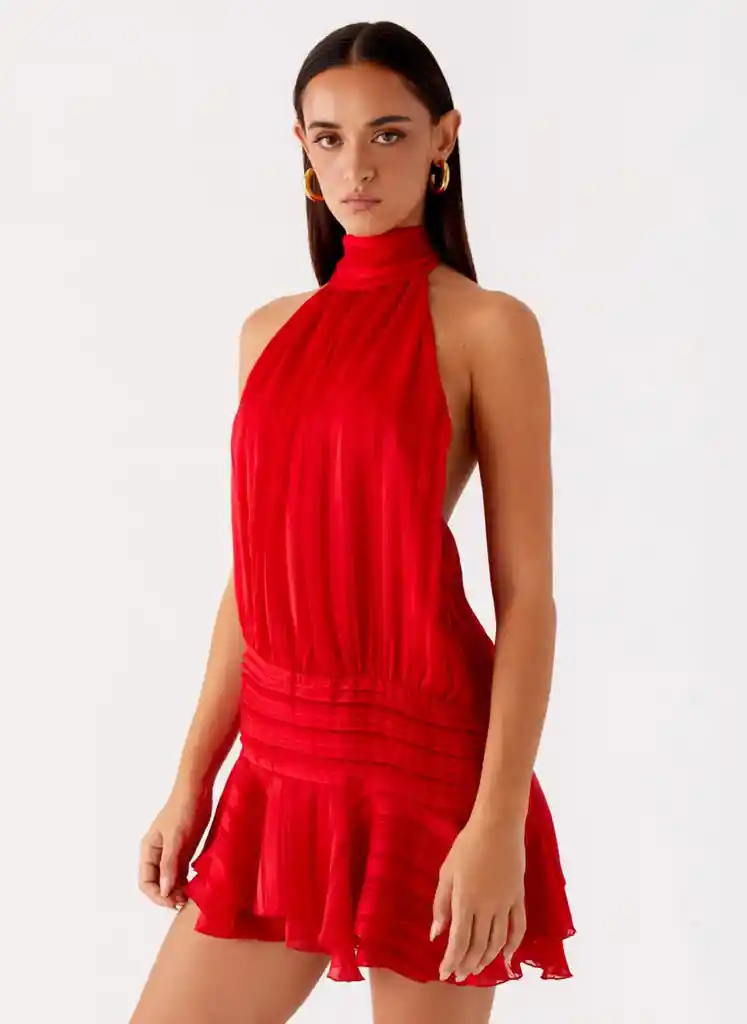VESTIDO MINI CUELLO ROJO Este vestido mini rojo con cuello destaca por su diseño clásico y su silueta favorecedora. Ideal para eventos, salidas casuales o citas, aporta un toque sofisticado y seguro sin perder comodidad ni estilo. Descripción del producto: El Vestido Mini Cuello Rojo combina elegancia y actitud. Su corte ajustado realza la figura, mientras el tono rojo aporta fuerza y presencia, convirtiéndolo en una prenda protagonista. Perfecto para usar solo o acompañado de chaquetas ligeras, es un esencial infaltable para la temporada primavera–verano. Atributos técnicos: Color: rojo Largo: mini Cuello: clásico Corte: ajustado Material: tela ligera y suave Temporada: primavera – verano Uso: casual, eventos, salidas