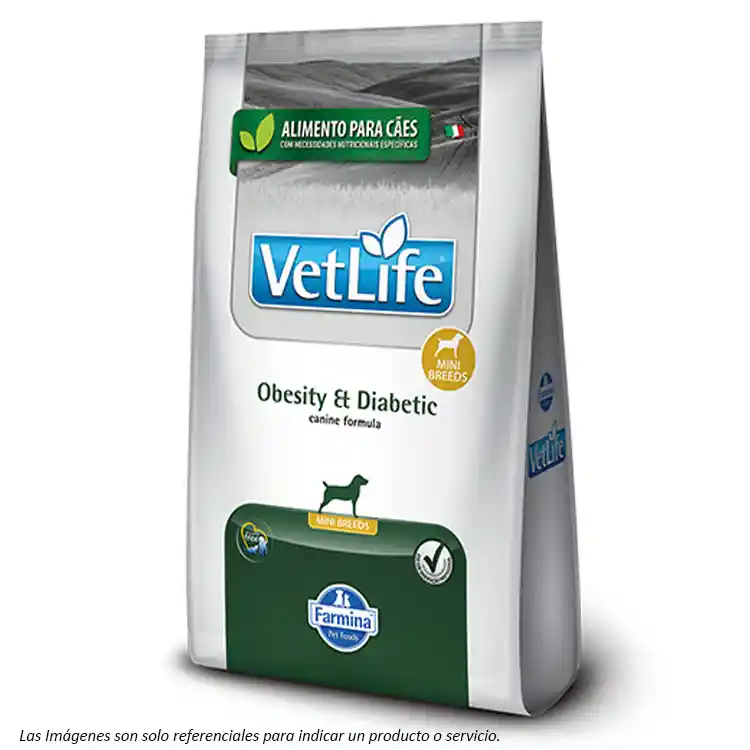 Alimento Coadyuvante Vet Life de Farmina, para Perros de Razas Pequeñas con tendencia a la Obesidad y/o Sobrepeso. Contiene un alto contenido de Fibras y una baja densidad energética, especial para lograr reales bajas de peso, sin tener que reducir sus raciones diarias. Apoya también en casos Diabetes Mellitus, ayudando a reducir el azucar en la sangre.