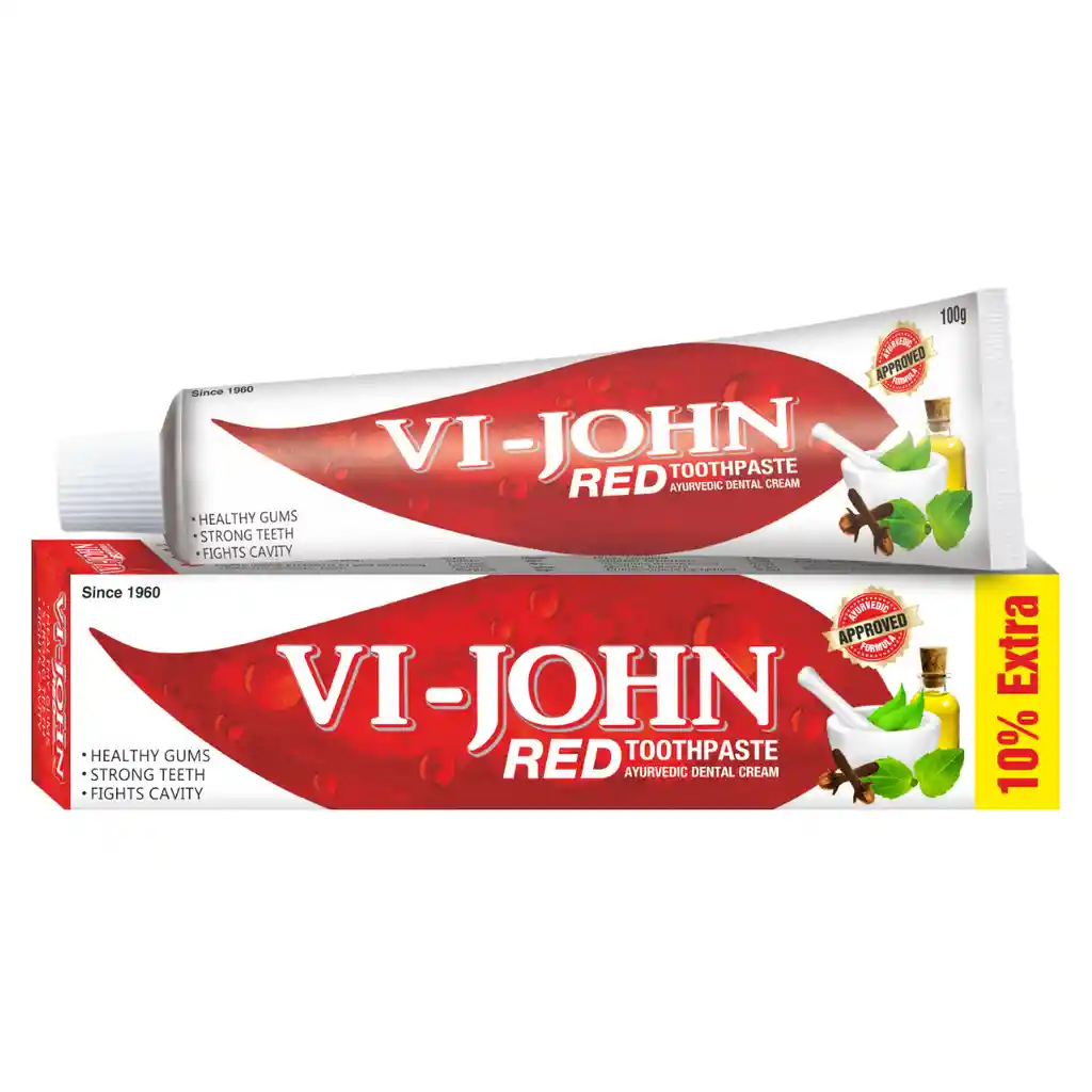 Pasta Dental Red Toothpaste de Vi-John Dale a tus dientes el mejor cuidado bucal que se merecen con la pasta de dientes Vi-john Red Toothpaste. Está formulado con la bondad del calcio, vitaminas y minerales como ingredientes activos. El calcio fortalece los dientes fortaleciendo el esmalte. Las vitaminas y minerales apoyan los dientes y las encías para brindar un cuidado dental. Características principales: - Combate los gérmenes creando una lámina protectora alrededor de los dientes. - Combate los problemas dentales para dar dientes más blancos y fuertes - Aporta un aliento refrescante de larga duración - Las hierbas naturales ayudan a tensar las encías haciéndolas sanas y fuertes - La pasta de dientes sana los dientes y las encías y fortalece el esmalte.