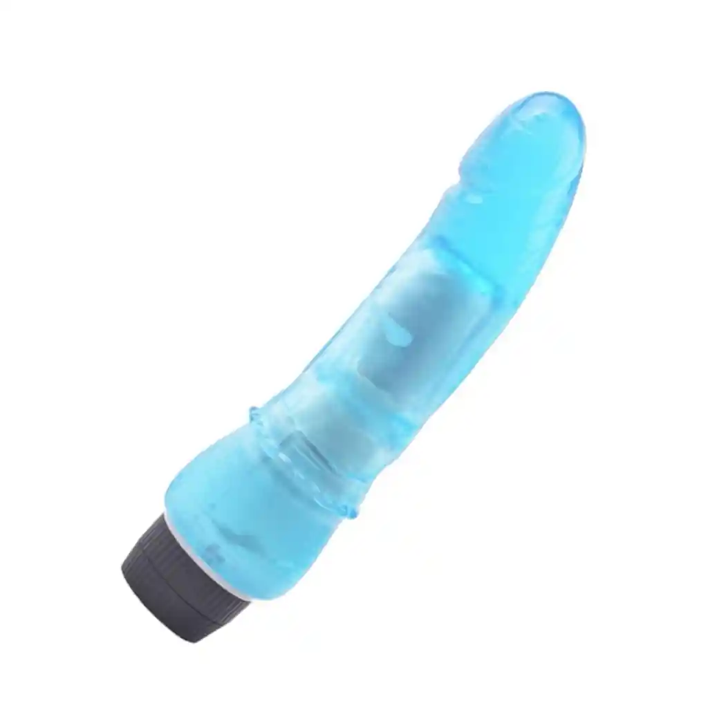 Vibrador con diseño semi curvo con glande, suaves venas y vibración regulable. Características: * Color: Al azar * Largo total: 19.7 cm * Largo insertable: 17 cm * Diámetro: 3.5 a 3.9 cm * Utiliza 2 pilas AA (No incluidas) * Fabricado en Jelly Se debe colocar una pila en cada sentido (una con el positivo hacia arriba y la otra con el negativo hacia arriba) Su velocidad se regula mediante el potenciómetro de la base.