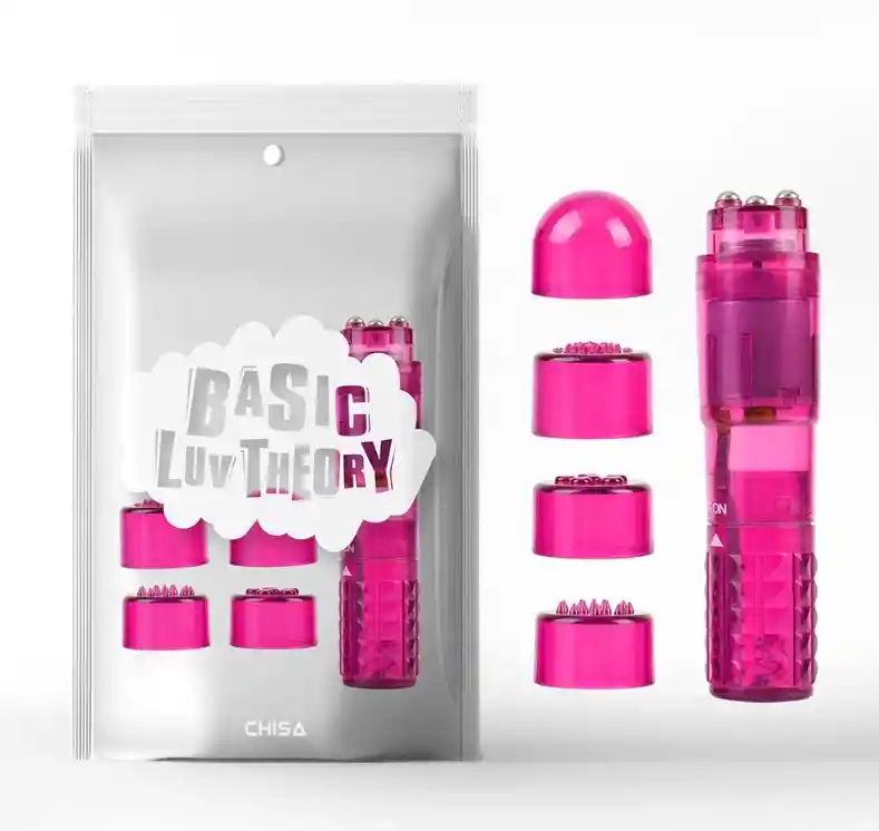 Mini balita vibradora rosada, cabezal intercambiable, pila AA