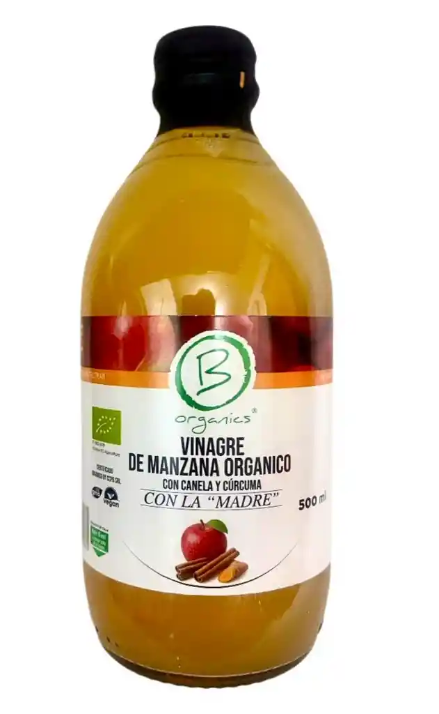 Vinagre de Manzana orgánico con Canela y Cúrcuma (500 ml) Refuerza tu bienestar con esta potente mezcla natural. El vinagre de manzana se une a las propiedades antiinflamatorias de la cúrcuma y el toque aromático de la canela para apoyar la digestión, el metabolismo y el sistema inmune. Ideal para tomar en ayunas o diluido en agua durante el día. ¡Tu dosis diaria de salud, con sabor y beneficios!