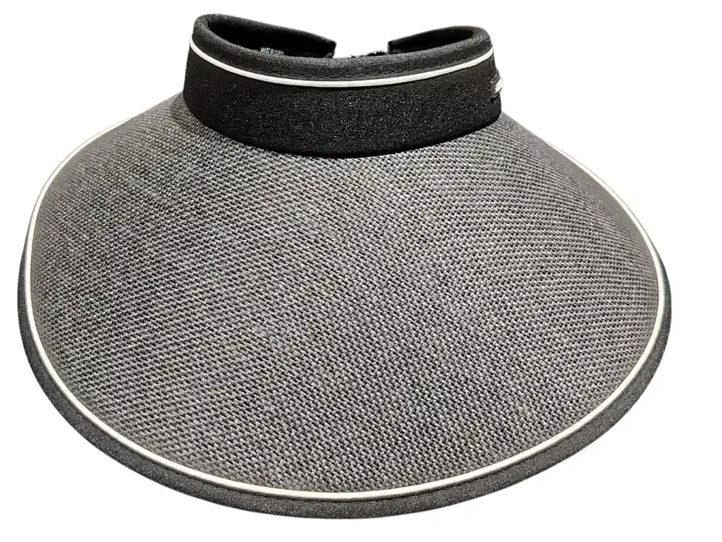 Visera de ala amplia confeccionada en material trenzado de alta calidad en tono negro, con acabado estructurado que mantiene su forma. Incorpora ribetes claros que realzan el diseño y aportan un contraste elegante y sofisticado. Su banda superior acolchada brinda un calce cómodo y seguro. Una pieza moderna y funcional, ideal para proteger del sol con estilo en looks urbanos, resort o de verano refinado.