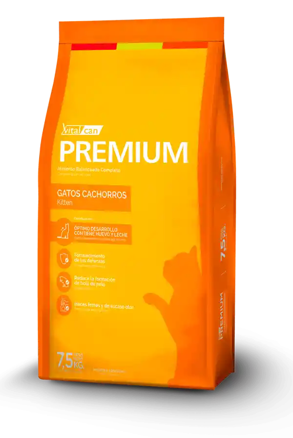 Vitalcan Premium alimento seco está diseñado para gatos menores de un año, ofreciendo proteínas de alta calidad provenientes de leche y huevo, esenciales para su desarrollo y crecimiento saludable. Esta fórmula especializada favorece la digestión y contribuye a mantener heces firmes con bajo olor. Además, ayuda a fortalecer el sistema inmunológico y a disminuir la formación de bolas de pelo, asegurando un cuidado integral durante esta etapa crucial.