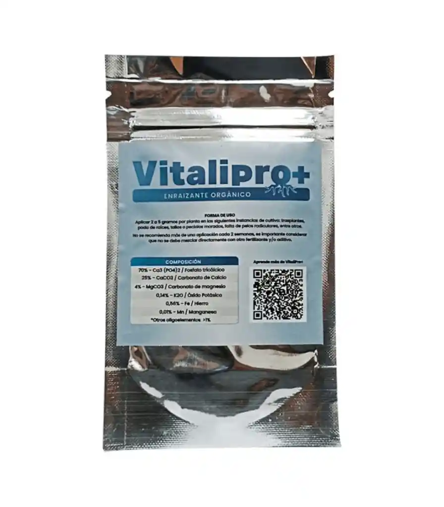 Vitalipro 20gr Vitali+, estimulante biológico en formato en polvo que fortalece el sistema inmunológico de las plantas y mejora su crecimiento. Formulado para optimizar la absorción de nutrientes, promueve un desarrollo más vigoroso, raíces fuertes y una mayor resistencia a plagas y enfermedades. Ideal para todas las etapas del cultivo, potencia la salud general de la planta, asegurando cosechas de alta calidad.