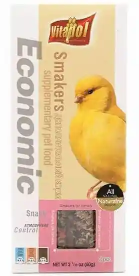 Vitapol Economic Smakers Canario 60g es un alimento suplementario para Canarios, para favorecer un crecimiento saludable y un correcto estado de salud, con componentes orgánicos indispensables para el crecimiento y funcionamiento de los órganos y el organismo, por eso debes ofrecer una alimentación variada, equilibrada y ayudar con suplementos si es necesario. Incluso en algunas especies de aves se recomienda según la época.