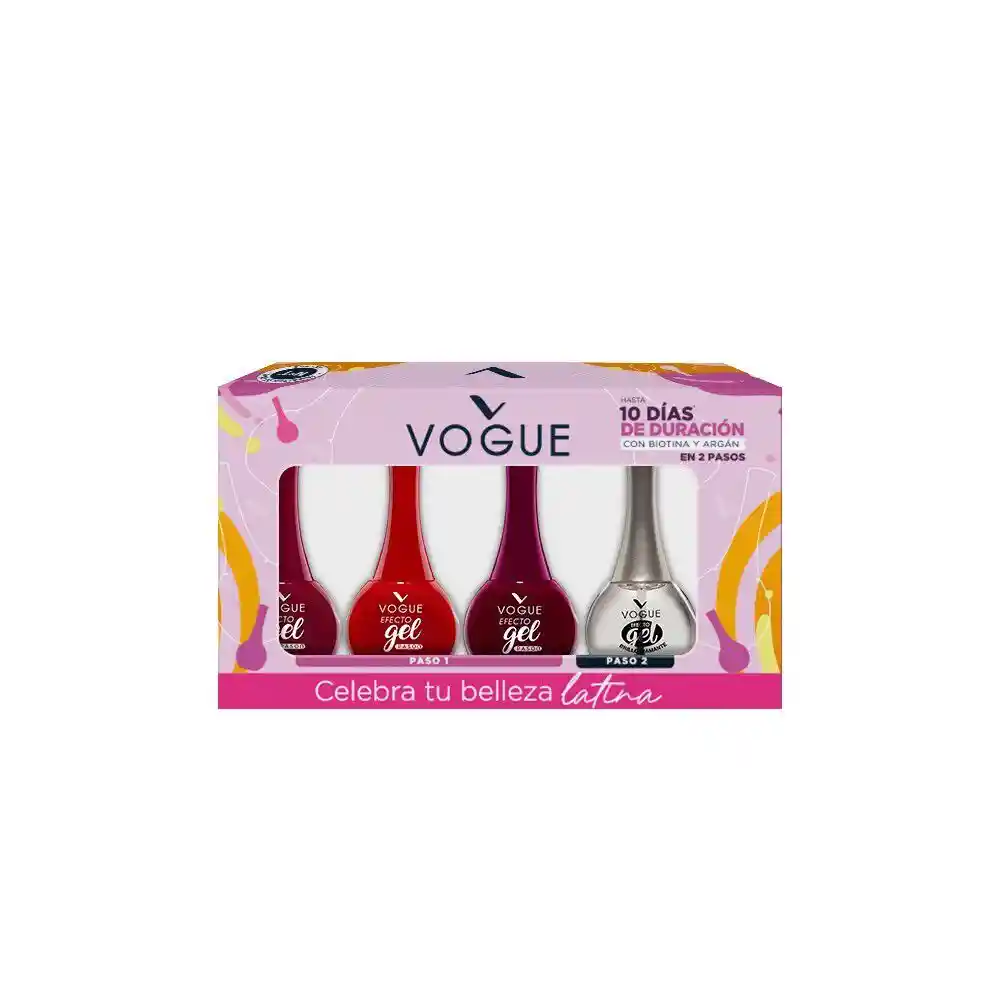 Vogue Set De Esmaltes Efecto Gel 14Ml X3+Brillo Diamante (Variedades)