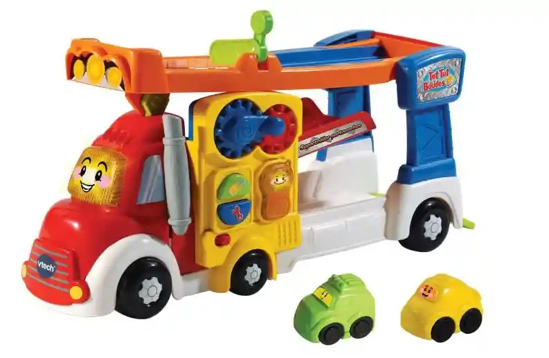 Supertrailer interactivo con una rampa de tres pisos que se levanta y permite lanzar los tut tut bólidos por las rampas o transportarlos en el camión. Tiene voz, efectos de sonido, luces, melodías y canciones; incluye 2 sensores mágicos que activan distintas interacciones, voces, sonidos y música. El camión tiene un sensor de movimientos que reproduce frases y música cuando el niño lo pone en movimiento. El panel lateral del camión se ilumina durante el juego, y hay varios elementos para manipular Tiene un gran botón con luz en la luna de cabina para escuchar las alegres frases y canciones del camión, y se puede pulsar también la chimenea para moverla y escuchar sus sonidos Puede llevar 2 vehículos tut tut bólidos en la plataforma superior y otros 2 en la inferior, que se cierra con la puerta inferior del camión para que no se salgan cuando esté en marcha Incluye dos mini tut tut bólidos no electrónicos. Se recomienda de 1 a 5 años.