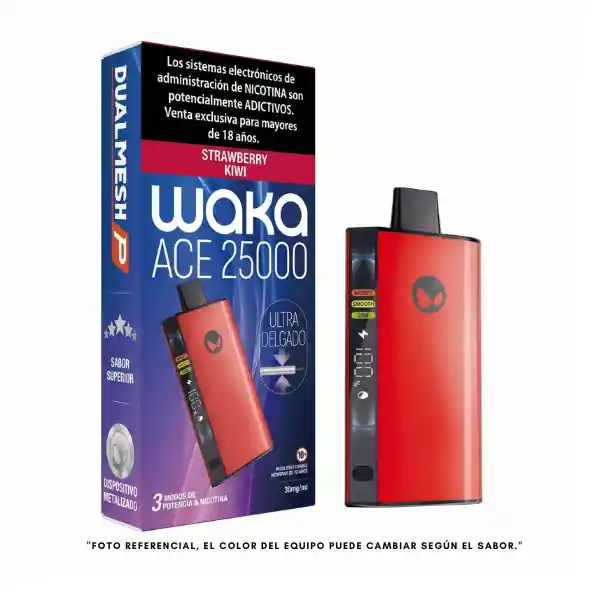 El WAKA ACE 25000 es un vaper desechable de alto rendimiento, diseñado para usuarios exigentes que buscan máxima duración, sabor intenso y control total en cada calada. Cuenta con hasta 25.000 puffs reales, ideal para vapeadores frecuentes que no quieren recargar ni cambiar dispositivo constantemente. Su diseño ultradelgado (17 mm) y estructura de aluminio aeroespacial lo hacen liviano, resistente y cómodo, perfecto para uso diario prolongado. Integra la avanzada tecnología DUALMESH-P, una resistencia de última generación que entrega sabor más intenso, vapor uniforme y caladas ultra suaves, superando ampliamente a los vapers tradicionales. Incluye 3 modos de potencia ajustables: Boost: calada potente y vapor denso Smooth: vapeo balanceado y suave Eco: mayor duración y ahorro de batería 🔋 Batería de larga duración 📊 Pantalla de control visual 💨 Vapor consistente y sin sabor quemado Disponible en 30mg de nicotina, ideal para quienes buscan una alternativa efectiva al cigarro tradicional. 📦 Entrega rápida por Rappi ⭐ Producto premium, alta rotación