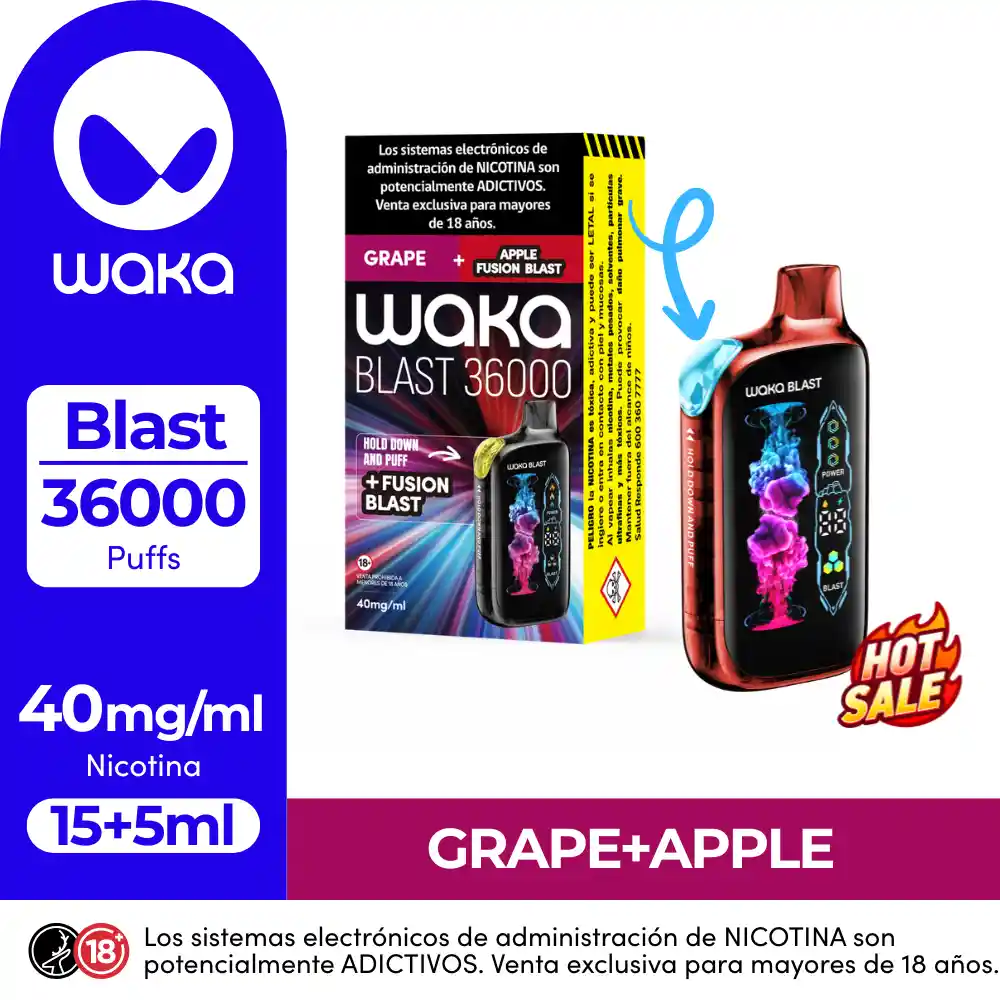 Waka Blast, activa el cambio de sabor con tan solo un click. Pantalla digital amplia para personalizar tu experiencia de vapeo: Flujo de aire, potencia e intensidad de sabor.