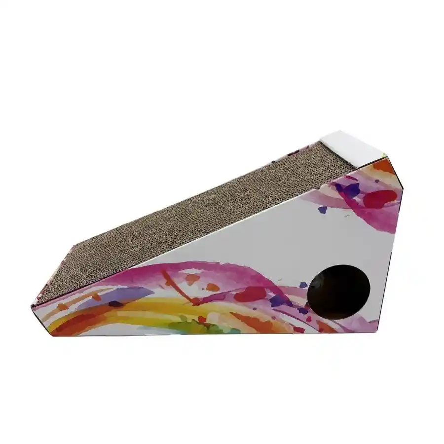 Rascador de cartón corrugado en formato inclinado con juguete integrado. Liviano y fácil de mover, ideal para ...Ver más