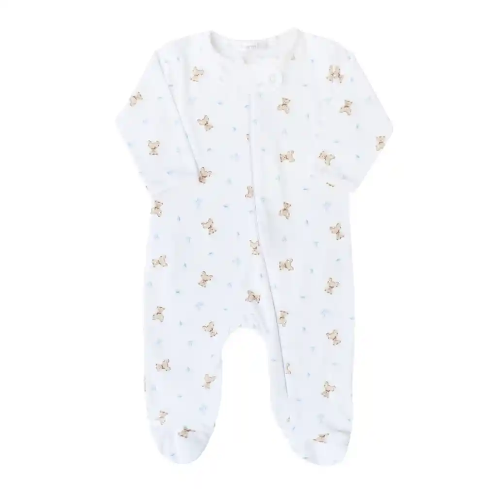 Nuestro delicado enterito esta hecho en 100% Algodón Pima. La fibra más delicada para la suave y sensible piel de tu bebe. - 100% Hipoalergénico. - Cierre invisible. - Estampado al agua tacto cero. - Lavar a mano con agua fría.