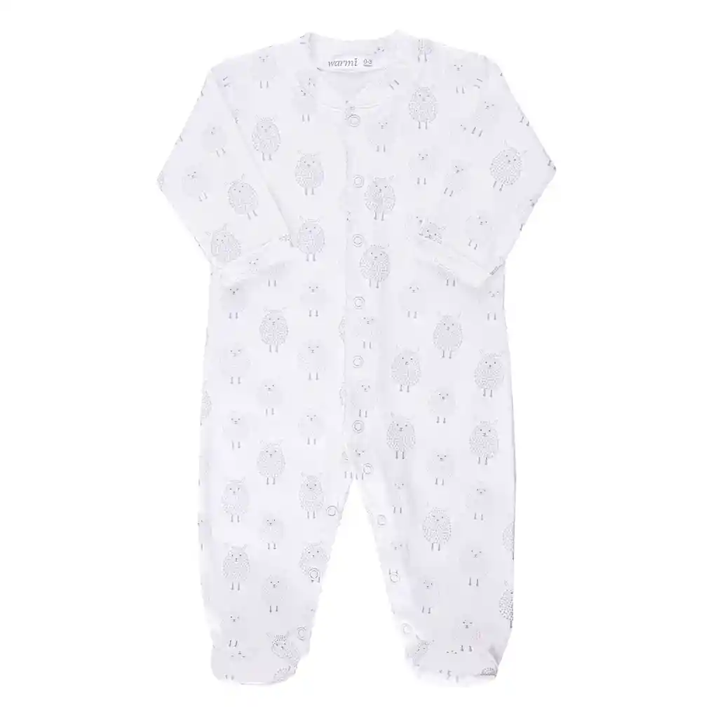 Este lindo enterito está elaborado con 100% algodón Pima de la más alta calidad. El diseño de ovejas grises con picueta en toda la prenda le dará a tu outfit un toque único. Estampado seguro al agua para mantener sus colores brillantes.