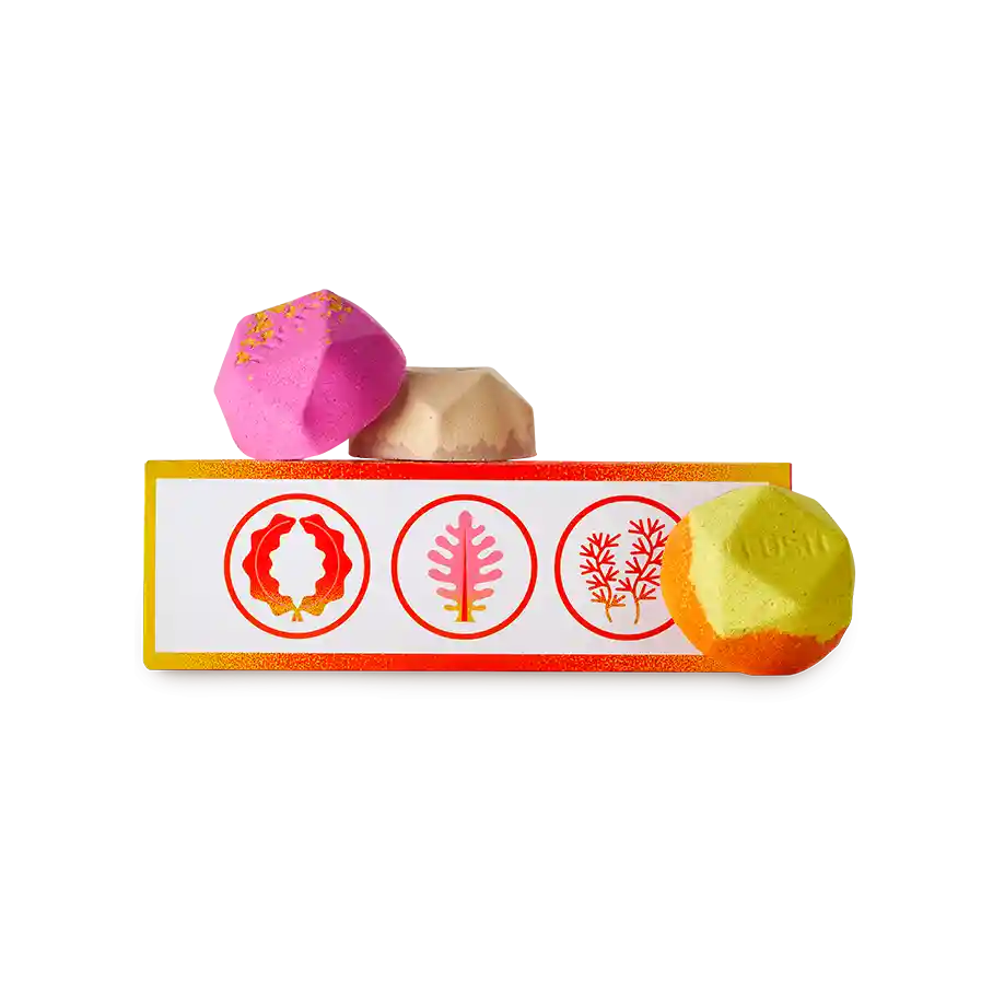 Ippuku Dan es un trío de mini bombas de baño cálido, vigorizante y rico en nutrientes de alga, inspirado en el arte de los baños reparadores japoneses.