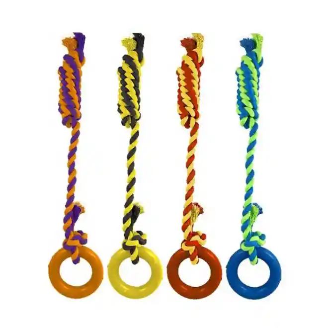 El mordedor para perros es un juguete con forma de aro con cuerda de algodón que está diseñado especialmente para que disfrutes practicando actividades al aire libre con tu mascota. Con este juguete tu mejor amigo podrá jugar y entrenar durante horas, diversión ilimitada que incrementará su calidad de vida y bienestar. Está disponible en dos tamaños, pequeño y grande. Es un juguete fabricado con un material no tóxico, muy resistente y flexible. Su divertida forma lo hace ideal para que practiquéis juegos de lanzar y recoger. De esta manera tu perro se estimulará física y mentalmente y a la vez estará fortaleciendo su mandíbula, gracias a la resistencia del material del aro con cuerda. Este juguete está diseñado para satisfacer el instinto cazador de tu mejor amigo. Juegos, entrenamiento y estímulos, todo en un solo producto que encantará a tu mascota. VENTAJAS: Mordedor para perros con forma de aro con cuerda. Las mascotas podrán jugar y entrenar durante horas al aire libre. Material no tóxico, resistente y flexible. Fortalece su mandíbula y lo estimula física y mentalmente. Satisface el instinto cazador de los perros.