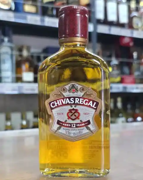 El Chivas 12 años de 200 ml es la versión "de bolsillo" del famoso whisky escocés. Es una botella de vidrio pequeña, chata y elegante, ideal para llevar o regalar.